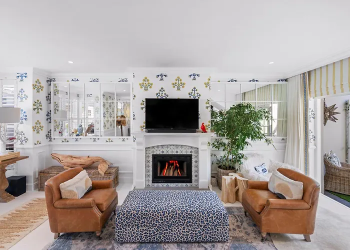Modern Coastal Townhouse At The Majestic Apartment comprises a balcony and a terrace and offers the added comfort of a fireplace, as well as amenities like climate control. The property is also furnished with a writing table. Beds fitted with plump-down pillows are at guests' disposal. This apartment is equipped with a bathroom that features hairdryers and bath sheets. Furthermore, a walk-in shower is available.